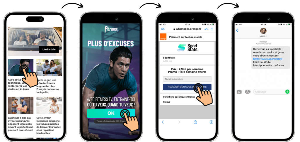 - Navigation : Vous naviguez sur un site internet ou une application et vous cliquez sur une publicité pour notre service.